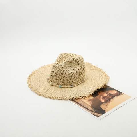 Sombrero de Sol de playa de verano para mujer al por mayor, sombrero de viaje Derby con protección UV superior alta en forma de lámpara popular nueva de ala ancha para fiestas de mujeres